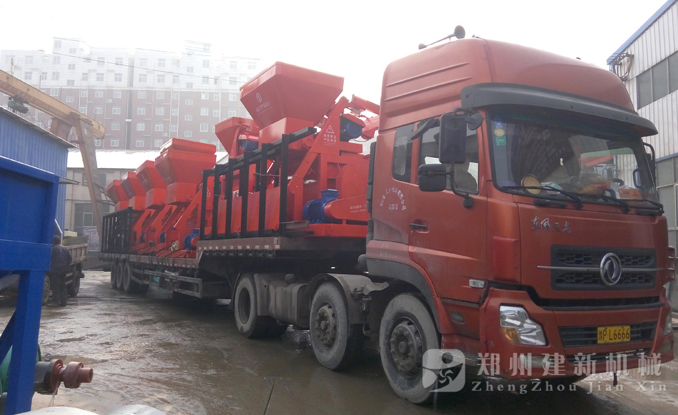 2015年12月1日,6臺JS750強制式混凝土攪拌機在鄭州建新機械廠家完成裝車,發(fā)往河南周口。