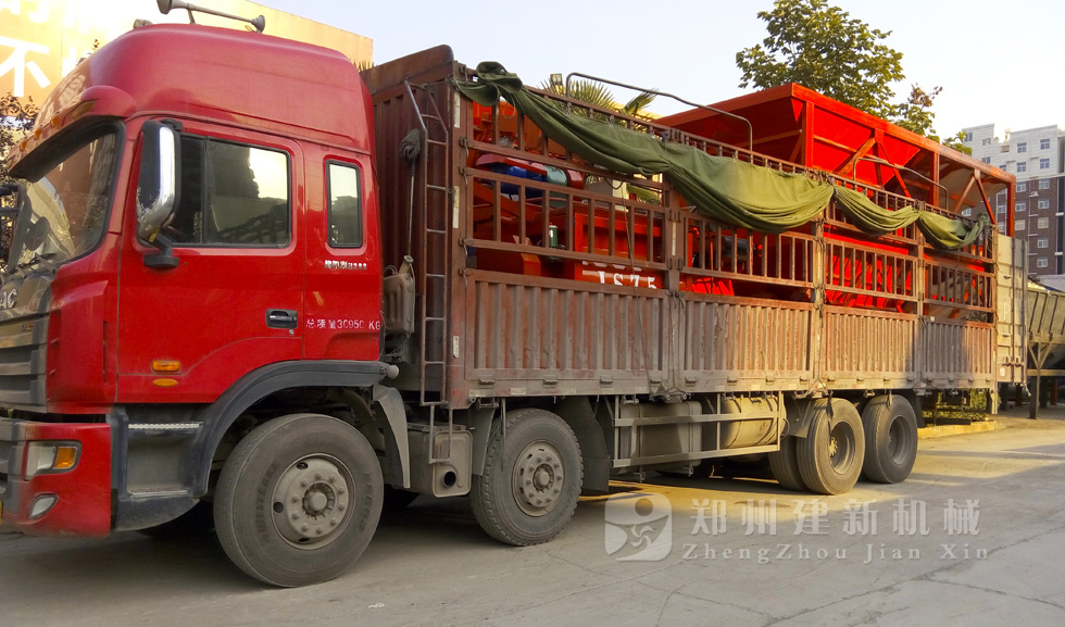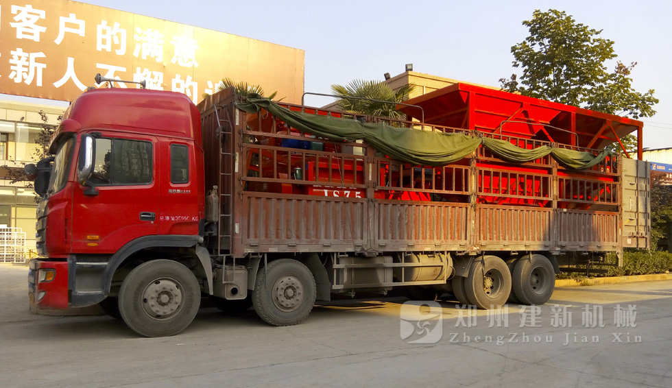 9月15日,周口用戶訂制的HZS35混凝土攪拌站設(shè)備,于生產(chǎn)廠家建新機(jī)械裝上卡車,等待發(fā)往河南周口。